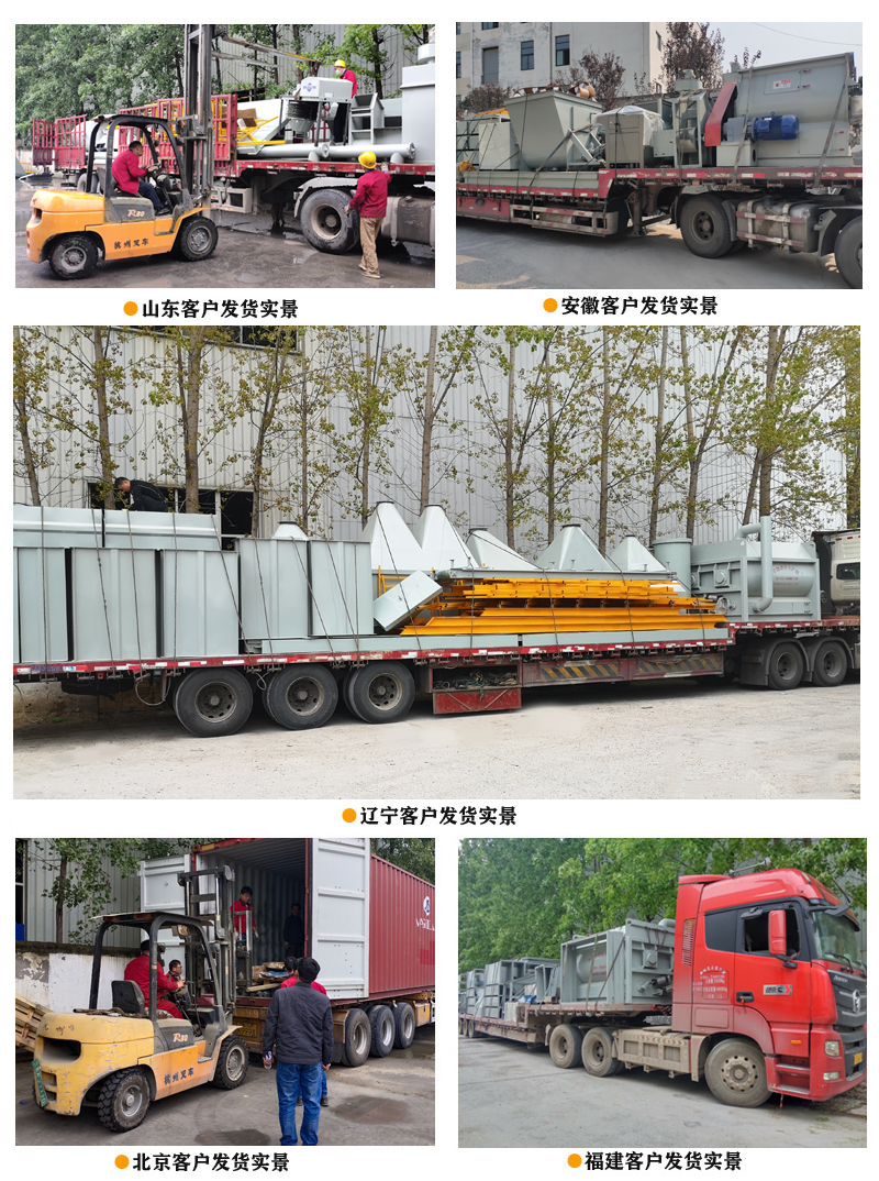 主控制系統依據選定工藝配方下達生產指令,系統自動從儲料倉中按配比提取原料,原料經配重后依次進入待混倉及無重力高效混合機,實現快速混合作業(3-5分鐘)。達到混合精度要求后,成品砂漿被輸送至具備二次混合功能的成品倉,進入自動灌裝流程,新設計的自動包裝機按要求進行定時定量灌裝作業,大大提高產出效率,包裝好的成品被送至成品區堆放,等待出廠。